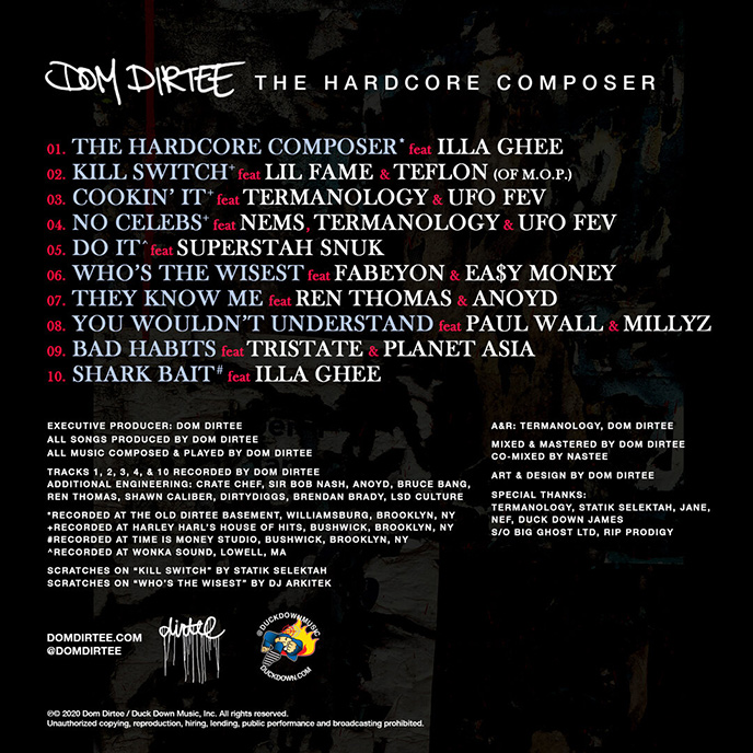 After making a name for himself by designing artwork for some of the biggest names in hip-hop, Brooklyn’s own Dom Dirtee is flexing his production skills on his album debut, The Hardcore Composer.